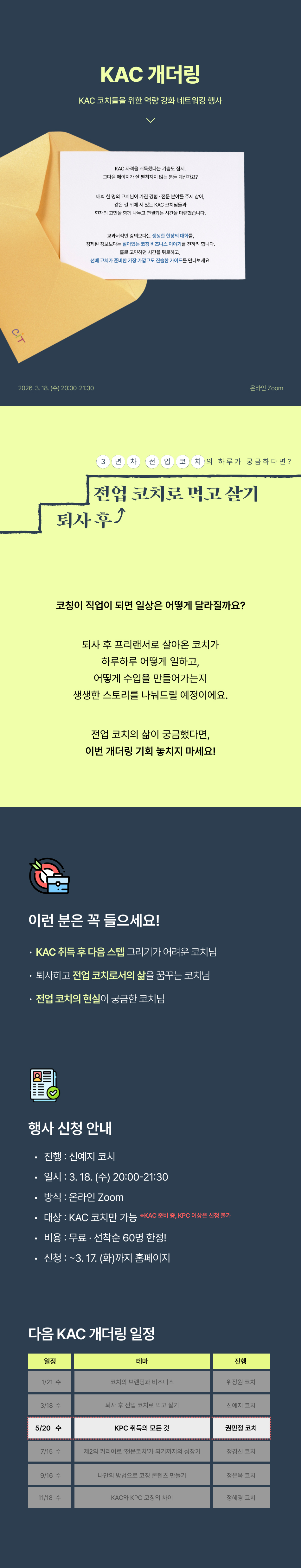 KAC 코치만 가능 (KAC 준비 중이거나 KPC 이상은 신청이 불가합니다.)