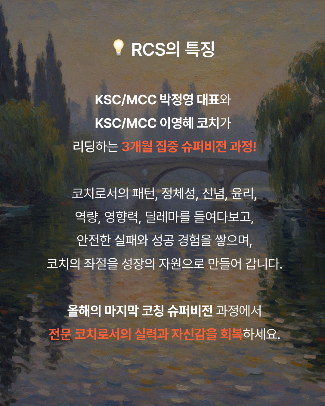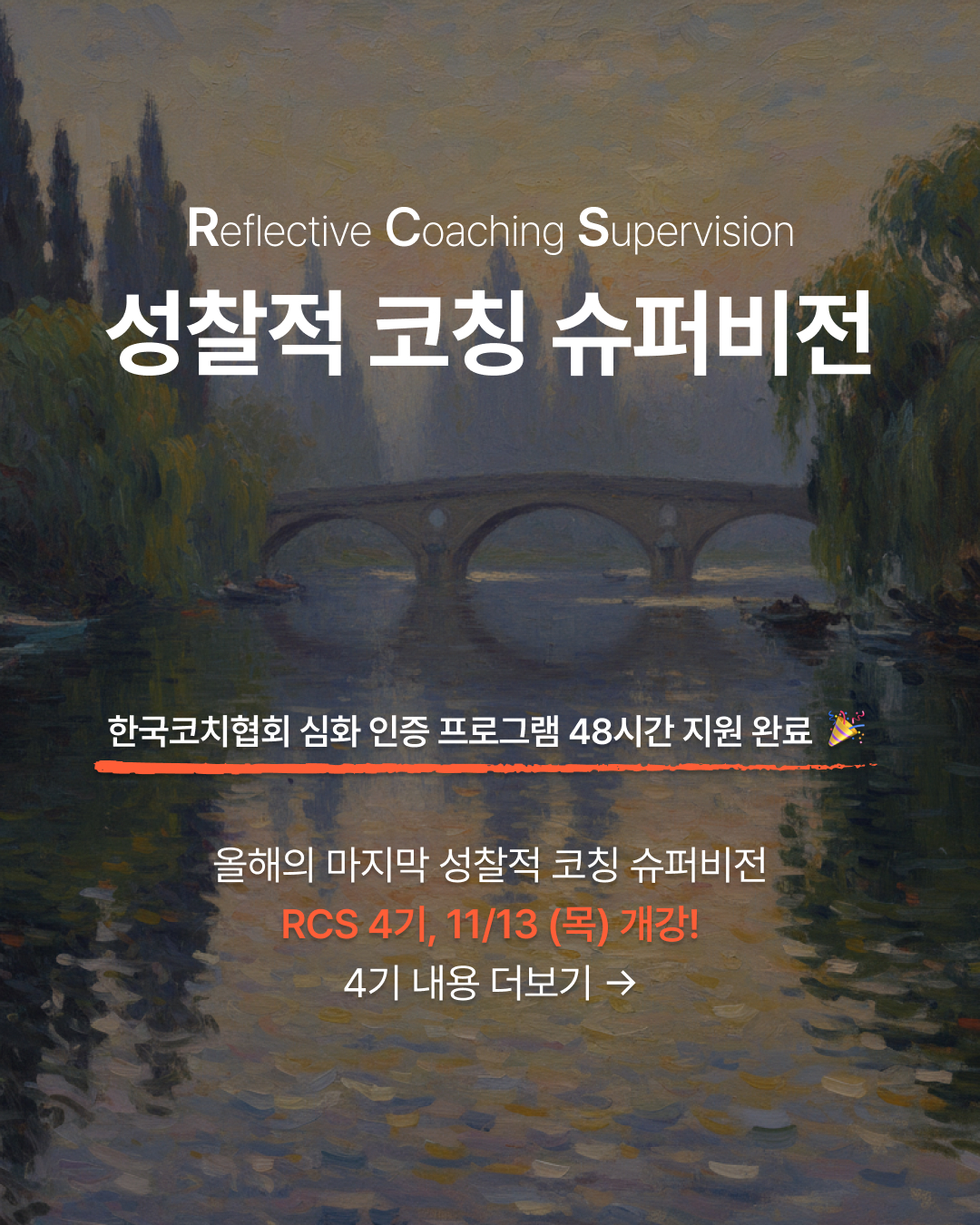 ‘슈퍼비전도 코칭 답게!’ 전문 코치로서의 패턴, 정체성, 신념, 윤리, 역량, 영향력, 딜레마를 성찰적으로 들여다보며 코치의 전문적 성장과 개인적 성숙을 돕는 최고의 과정