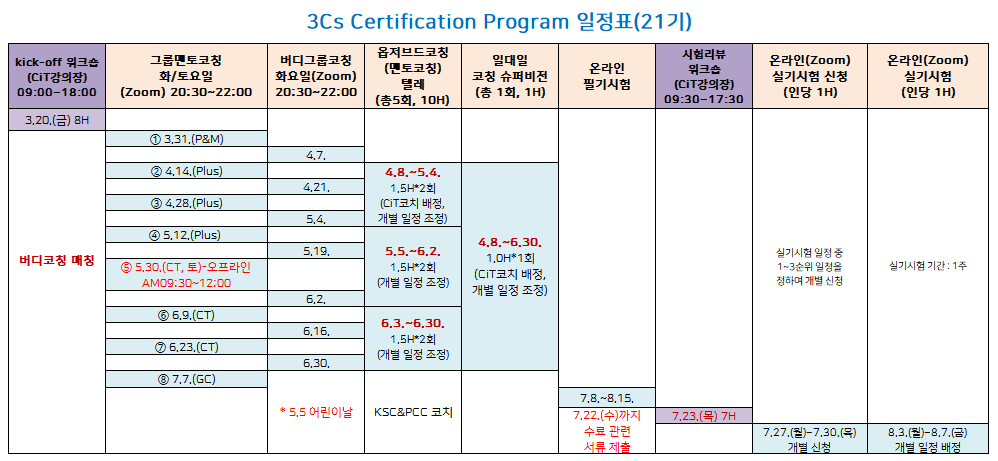 KAC 준비반, KPC 준비반, 코치더코치, 멘토코칭, Basic FT 양성과정