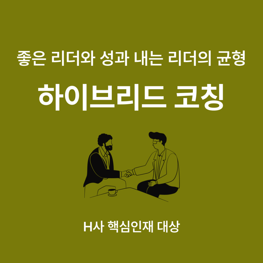 코칭 프로그램 일대일/그룹 코칭: H사 팀장급 핵심 인재 대상, 하이브리드 맞춤형 코칭으로 좋은 리더와 성과 내는 리더의 균형 찾기