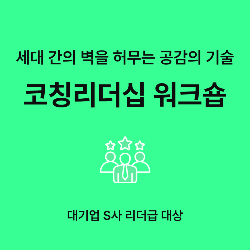 워크숍 프로그램 코칭리더십 워크숍: 대기업 S사 리더급 대상, 구성원과의 의사소통 스킬 향상 및 리더십 발휘