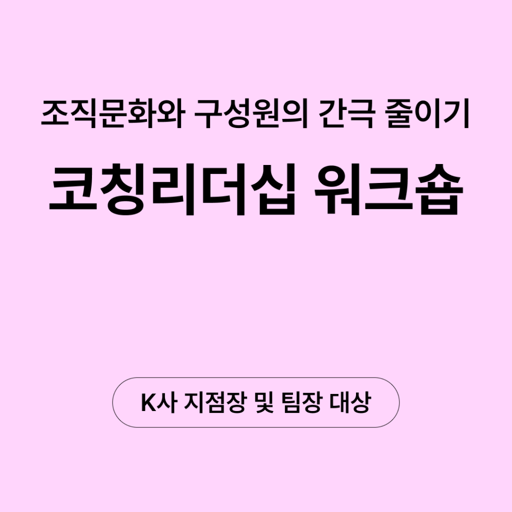 워크숍 프로그램 코칭리더십 워크숍: K사 지점장 및 팀장 대상, 수직적 조직문화와 구성원이 추구하는 수평적 가치의 간극 줄이기