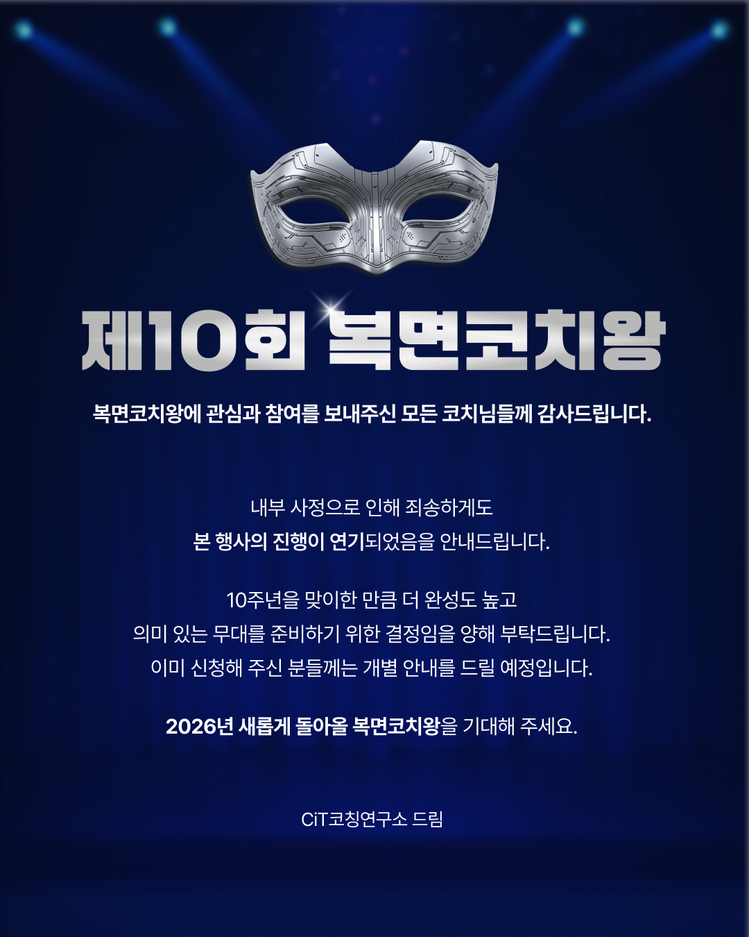 2016년부터 시작된 CiT 시그니처 이벤트! 이름, 경력, 자격증 떼고 오로지 코칭 실력으로만 승부하는 국내 유일 블라인드 코칭 오디션, 복면코치왕