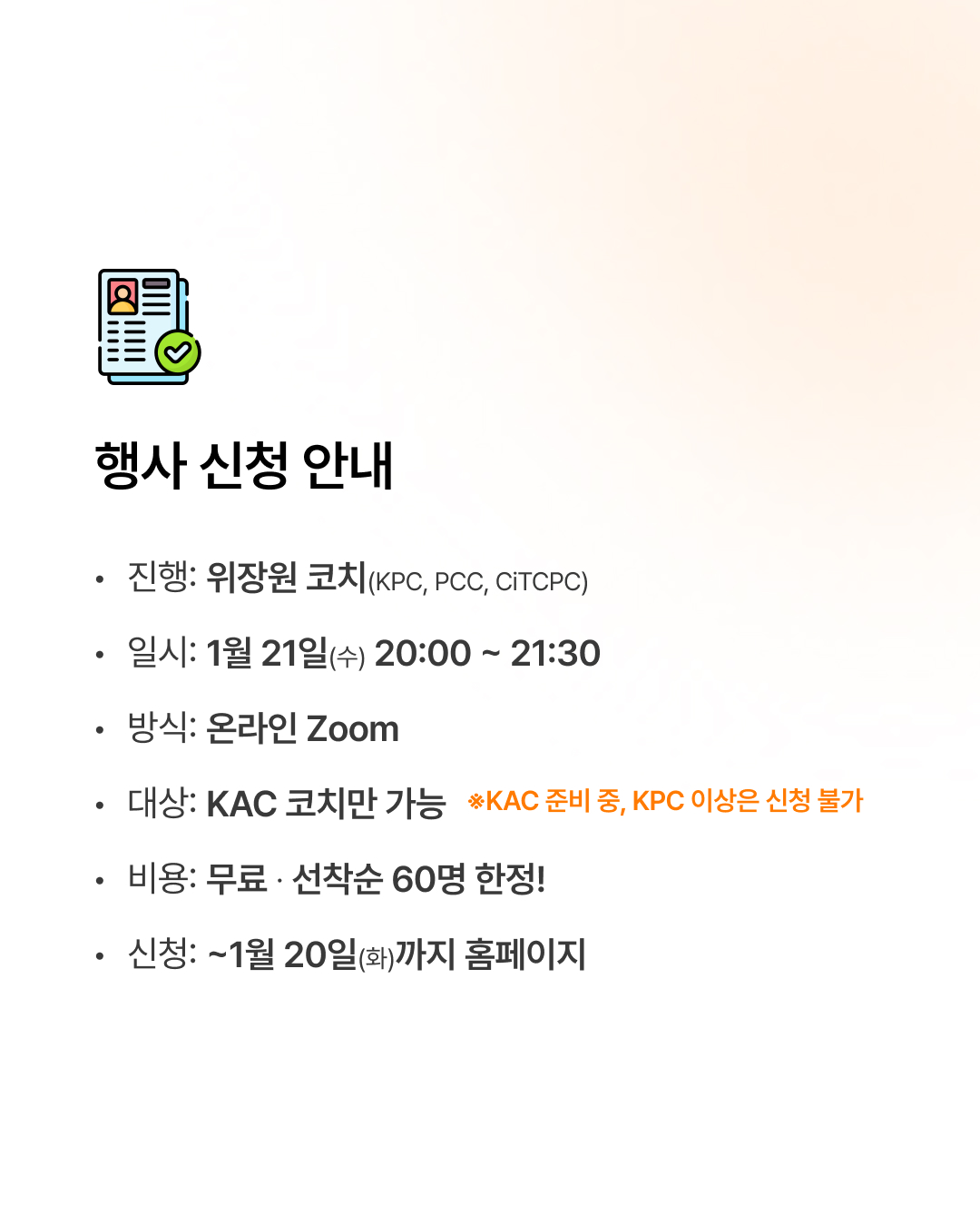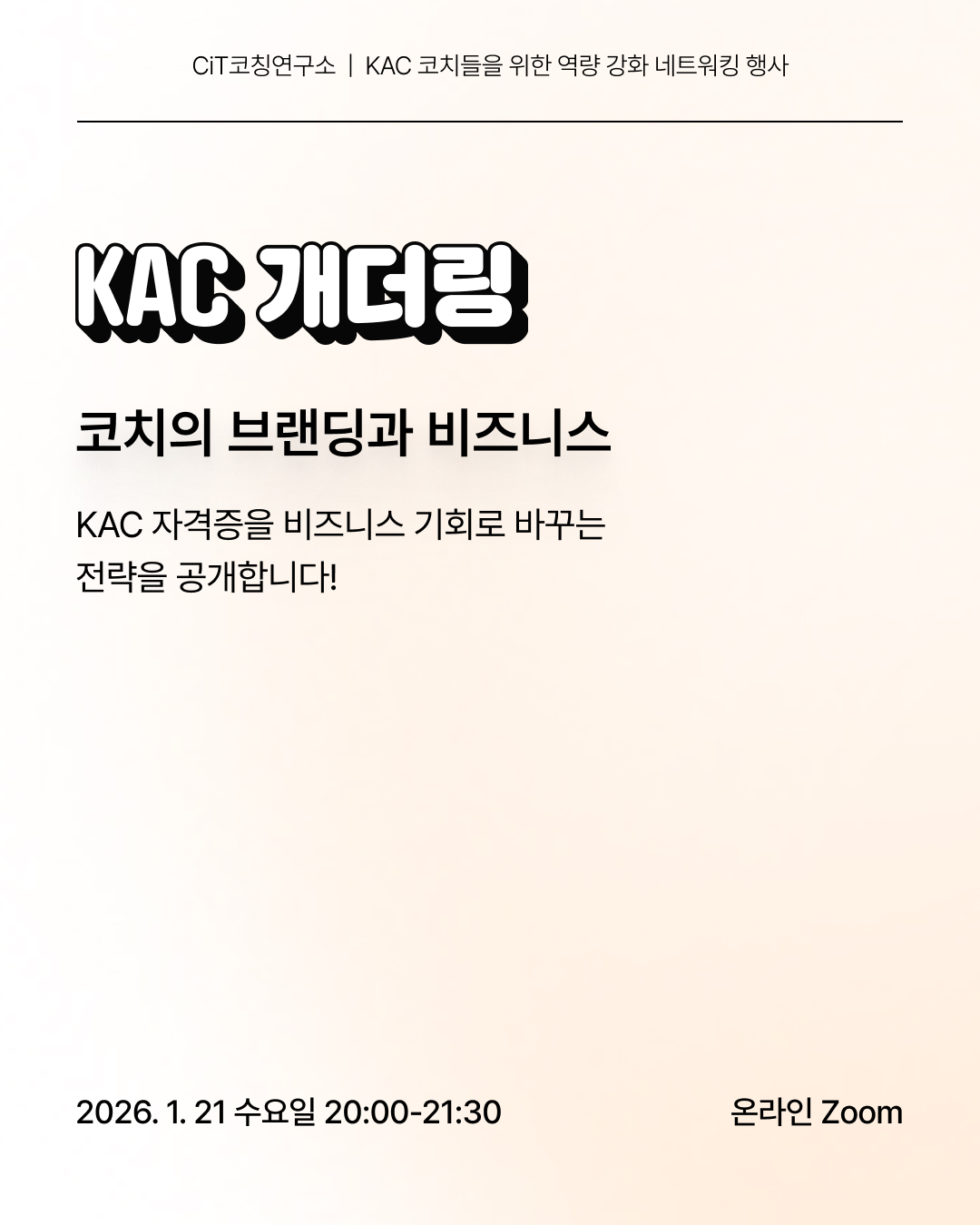 KAC 취득 후 기쁨도 잠시, 앞으로의 방향성이 모호하다면 꼭 참석해 보세요.
