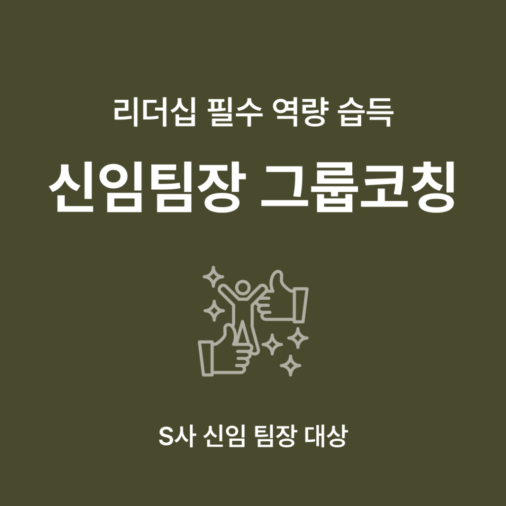 코칭 프로그램 신임팀장 그룹코칭: S사 신임 팀장 대상, 성공적인 조직 안착, 역할 전환, 리더십 필수 역량 습득