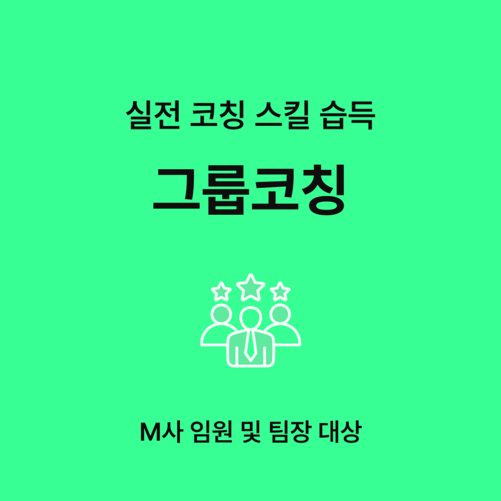 코칭 프로그램 그룹코칭: M사 임원 및 팀장 대상, 리더십 개발, 피드백 역량 점검, 실전 코칭 스킬 습득